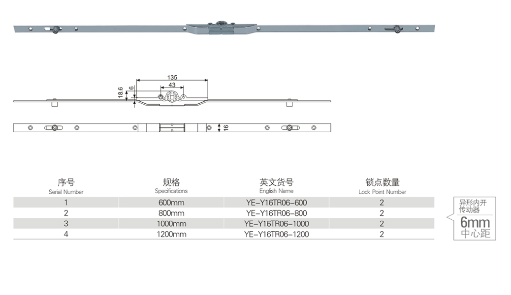 6 mm centre distance of special-shaped inner drive
