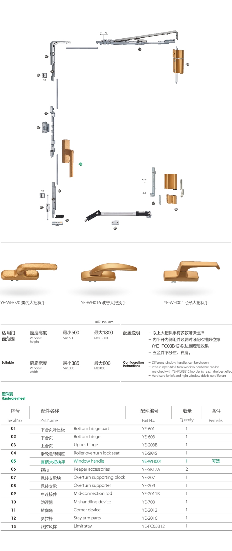 第七代20內(nèi)開內(nèi)倒窗零部件