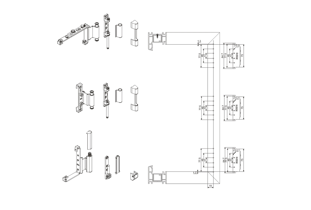 塑鋼角部鉸鏈B型打孔圖