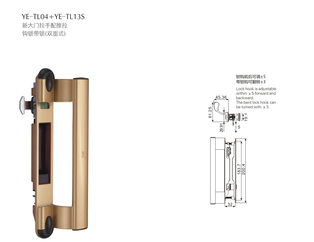 新大門(mén)拉手配推拉 鉤鎖帶鎖(雙面式)